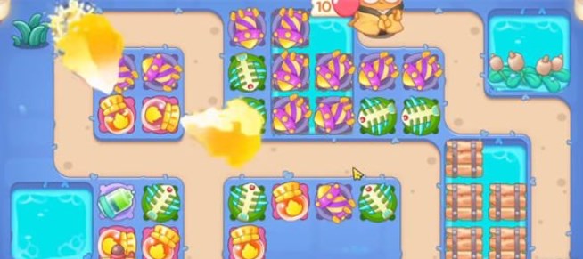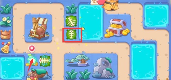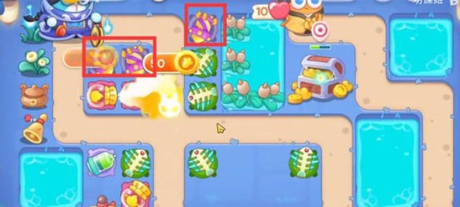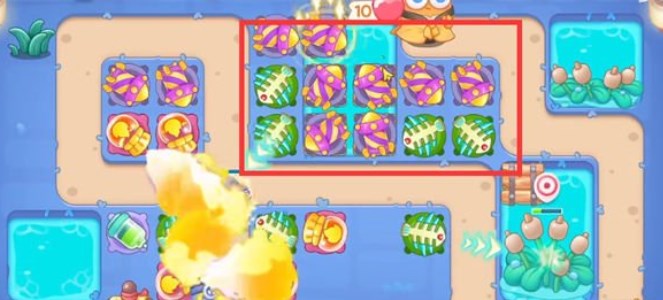 1.开局在下面的位置放鱼骨刺,上方的鱼骨刺拆除附近的道具;