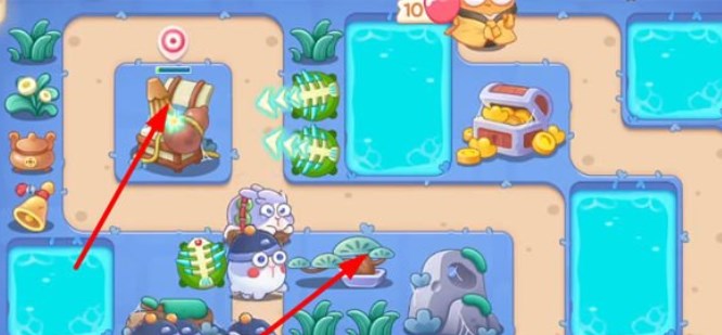 2.等到小草被打掉后,锁定钱袋进行拆除,小草空出的位置继续放置鱼骨刺;