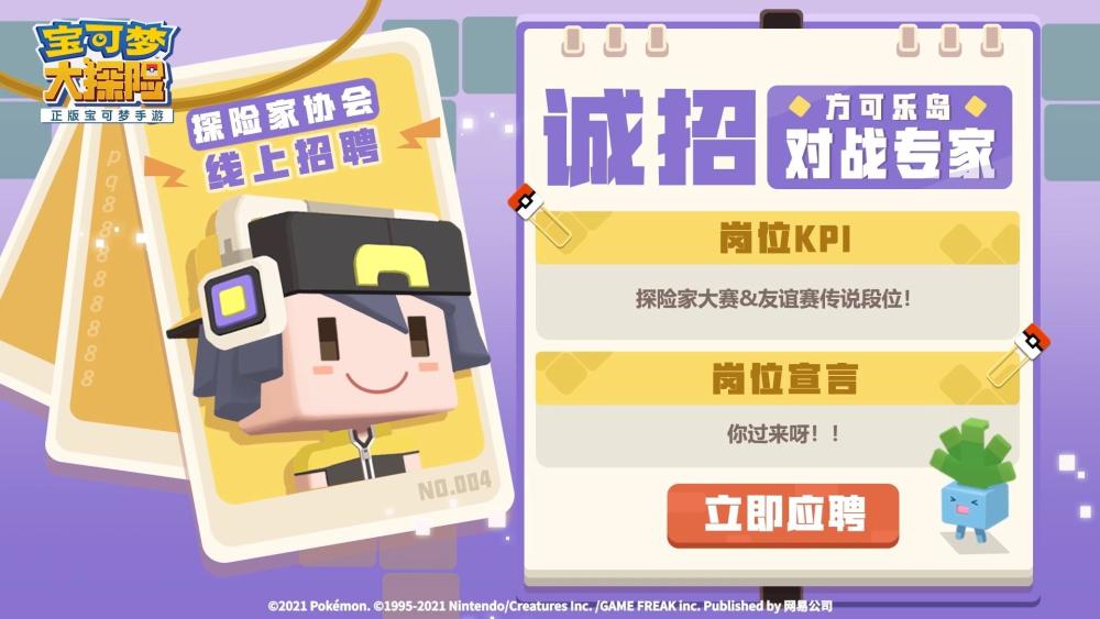 《宝可梦大探险》凭借自身的游戏质量获得了众多宝可梦爱好者的喜爱,这次520整活的招聘广告再次吸引了玩家的眼球,再加上和《宝可梦:超梦的逆袭 进化》的正式联动也让玩家格外兴奋。