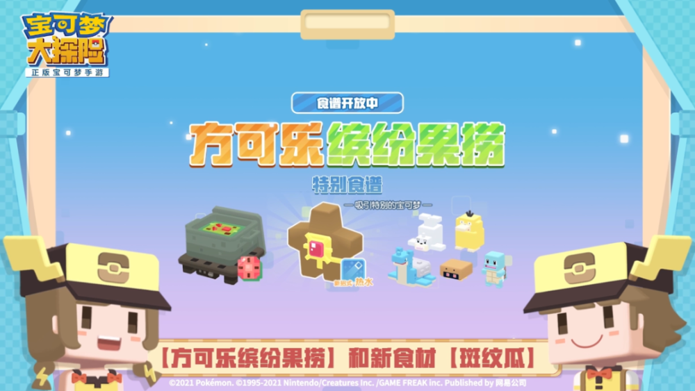 而且,这次《宝可梦大探险》还给玩家准备了新料理方可乐缤纷果捞和新食材“斑纹瓜”,这个新料理和新食材能够吸引水属性宝可梦,感兴趣的小伙伴别忘了申请入职烹饪新料理来吸引宝可梦哦。