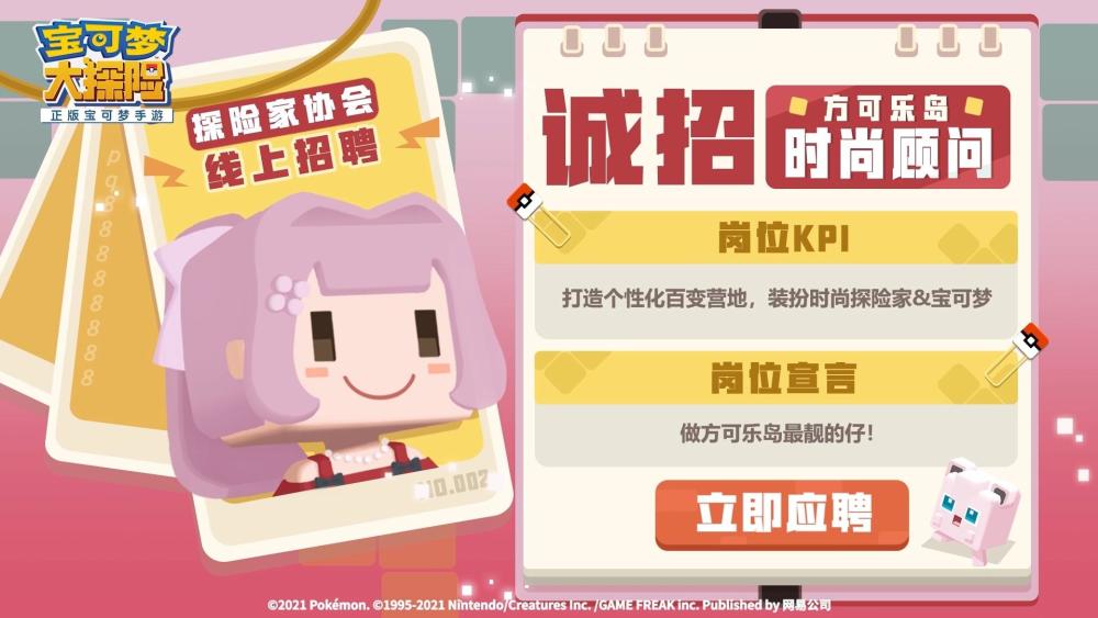 不仅如此,在520发布会上《宝可梦大探险》还推出了线上招聘会,其中包含了各类热门岗位供玩家挑选。在众多热门岗位中,方可乐岛料理大师吸引了小编的关注,在《宝可梦大探险》中,料理玩法是很多人喜欢的,为了吸引更多宝可梦,玩家必须要掌握烹饪美味料理的技巧,所以方可乐料理大师这一岗位也是热门岗位。