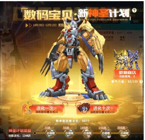 1、玩家购买角色经验卡+100*2,赠送数码暴龙机。