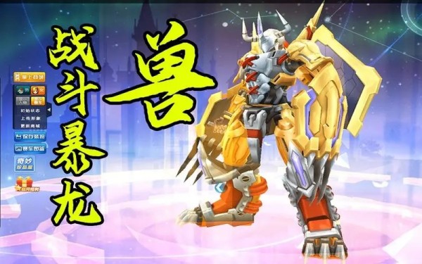 1、战斗暴龙兽是QQ飞车与数码宝贝联动的一款机甲赛车。