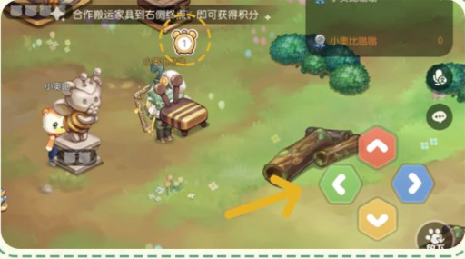 5、搬起家具后,右下方将出现方向键,玩家需要在头顶的2秒倒计时结束前按下方向键,选择搬运方向。
