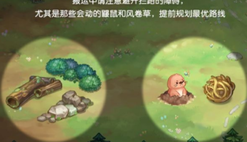 9、搬运过程中会遇到障碍物,还有鼹鼠随机出现阻碍搬运,玩家要注意规划路线。