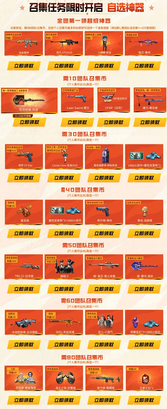 12月召集币可兑换奖励有:军用铁锹-丹龙、CFVIP、柯尔特-萌杀、龙儿-小淘气、灵狐者-黄金海岸等等。