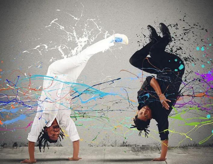如果无畏小子等级在20级以上的时候攻击=防御的话,那么就会进化成为战舞郎,别看战舞郎在如今的世代3D动作看起来左右渡步憨得不行,但实际上根据动画以及以前的官绘来看,就可以得知战舞郎在攻击的时候,都是头部和腿部反过来,利用头部的角来点地,然后用脚做回转攻击,这样的攻击让战舞郎看起来有点像是陀螺,不过说到底战舞郎的攻击模式主要还是来自于格斗技巧,那就是被称作巴西战舞的卡波耶拉(上图为现实中的卡波耶拉舞)。