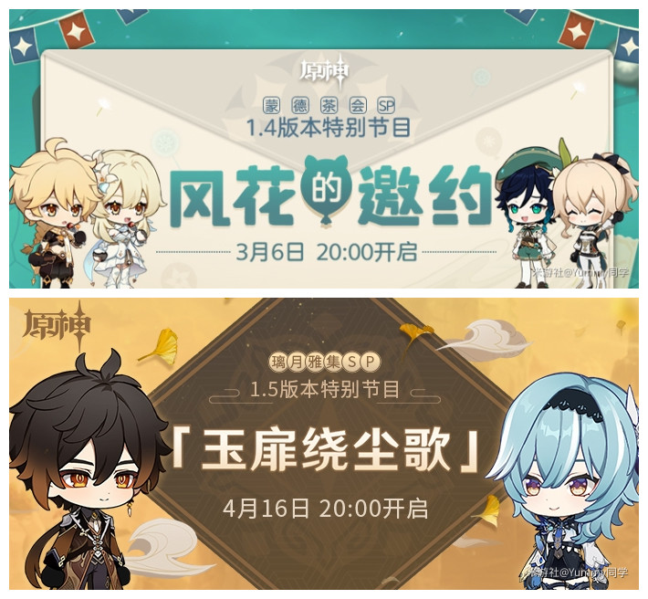 我们来看一下1.6之前的版本前瞻,看一下时间,我们可以发现每次版本前瞻之间相差40天,与每个版本的时间一致(每个版本,两次up,一共四十天),所以不难猜测,1.7版本将会在7月7日迎来版本前瞻,稻妻城,真的很期待啊!