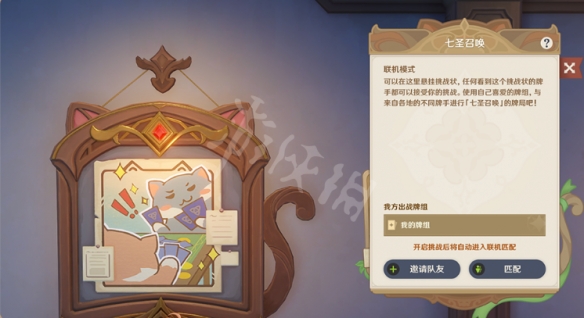 旅行者可以通过邀请板,邀请联机状态下的好友进行对决。