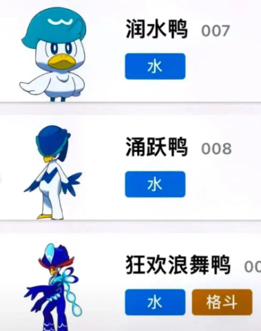 2、润水鸭进化路线润水鸭--踊跃鸭——狂欢浪舞鸭