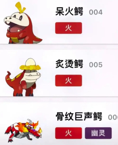 2、呆火鳄进化路线呆火鳄——炙烫鳄——骨纹巨声鳄