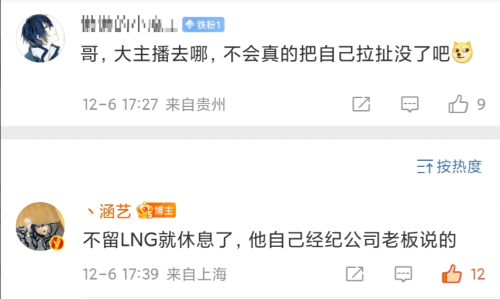 具体的爆料消息如下图所示,有网友询问涵艺:大主播去哪里?涵艺回答:doinb自己经纪公司的老板告诉自己,如果doinb不留在LNG,应该就休息了。