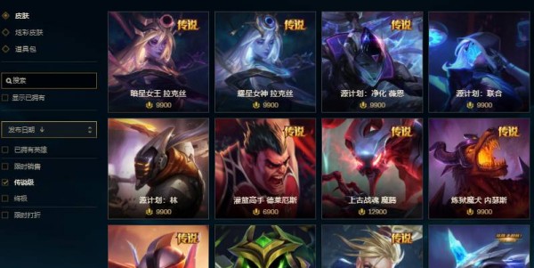 1、199:终极皮肤,年限,三国系列,周年限定。
