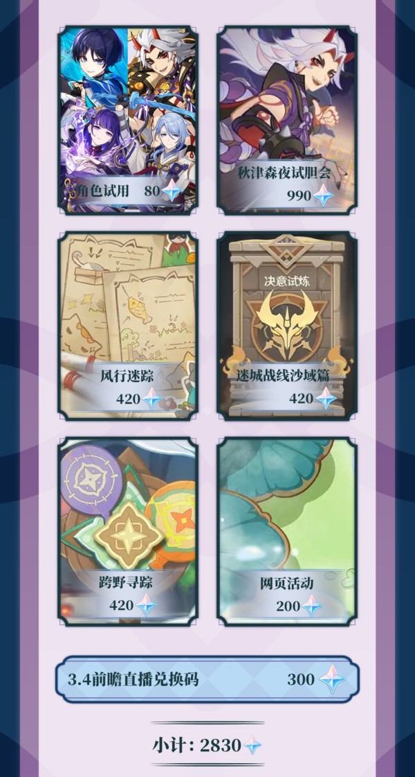 6、活动奖励共计2830原石。