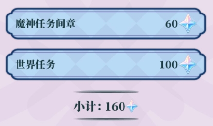 4、完成魔神任务,世界任务可获得160原石。
