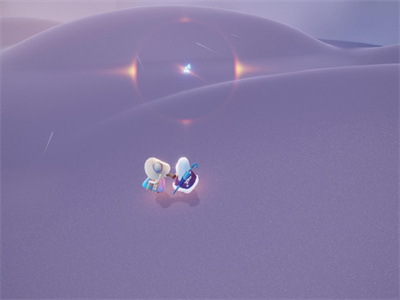 1、来到晨岛地图,朝着右边的沙丘飞过去。