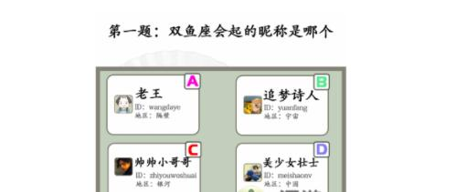 1、第一题问题:双鱼座会起的昵称是哪个?