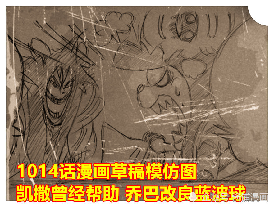而在这次漫画中,乔巴开始回忆,想起与科学家凯撒的争吵,外国情报师还特意画了模仿尾田的漫画草图,乔巴与凯撒从四皇大妈的【万 国】地盘出来后,开始讨论蓝波球的画面。