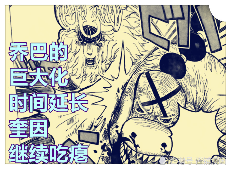 另一边,场面切换到宴会广场的核心区域,那里巨大化的乔巴继续对阵奎因。之前,乔巴的一个大巴掌,已经让奎因被打到吐血。