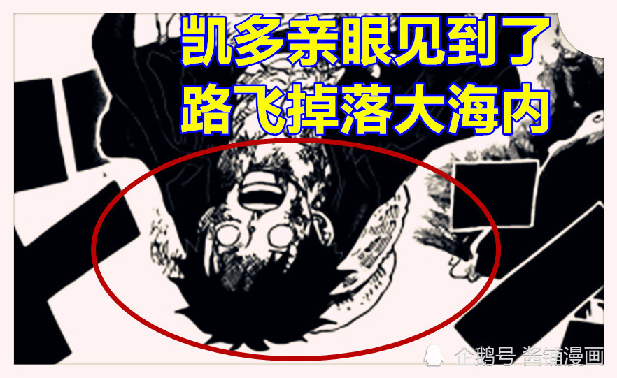 在漫画分镜中,凯多一直看着路飞的动向,确认路飞在掉落鬼岛后,也的确掉进了大海中,这一段时间内,凯多为了以防外一,特别用眼睛来验证了路飞的下落。路飞此时因为是翻白眼的状态,基本是毫无知觉和意识,任凭自己的下降,没有任何自救的举动。