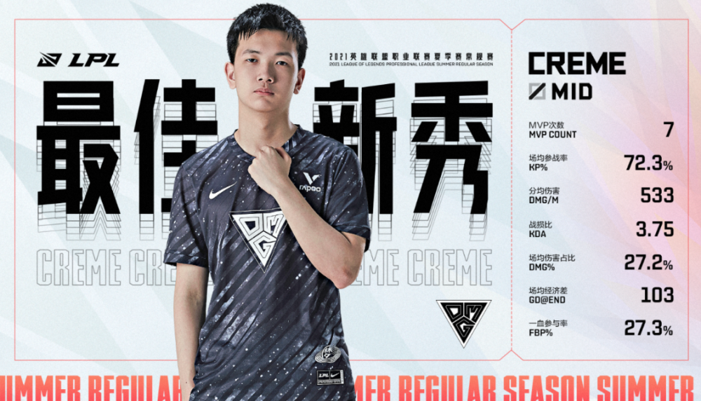 相信不少人都知道,Creme初登LPL舞台是在2021年LPL夏季赛中,而与许多敢操作的年轻选手一样,Creme也是凭借着刺客中单英雄打出了不小的名气。并且在LPL出道的第一个赛季,Creme便凭借着出色的表现获得了2021LPL夏季赛的常规赛MVP。在OMG这支队伍中,非常年轻的Creme俨然已成为了队伍中的核心。而在2022赛季,OMG这支队伍就在Creme的带领下出现了明显的进步。甚至在非常激烈的2022LPL夏季赛中,OMG绝境翻盘iG成功晋级季后赛,成为了当时的一段佳话。虽说OMG最终在季后赛中还是一轮游,但充满着朝气的他们,还是让不少OMG老粉丝们看到了这支老牌队伍的希望。