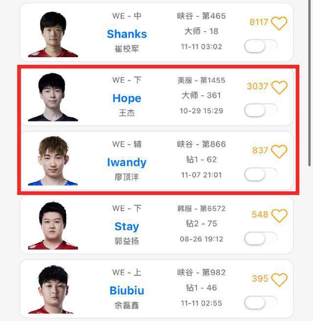今天九尾在网上冲浪的时候突然看到,WE下路组合引进了Hope和Iwandy选手。