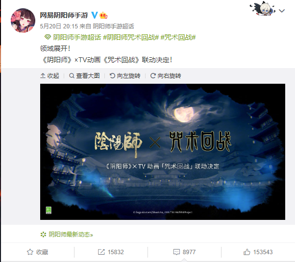5月20日的网易发布会上,网易游戏官宣了不少动作,包括网易旗下热门手游《阴阳师》的系列联动。其中,与tv动画《咒术回战》的联动最受瞩目。《咒术回战》作为2020年热门的动漫,坐拥粉丝无数,称得上超人气tv动画。