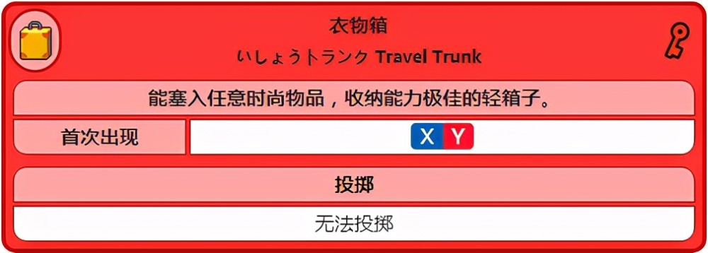 衣物箱是众多道具中的其中一种,它出现在第六世代,可以允许主角更换服装;但是,衣物箱在正式版中被宝可梦中心的试衣间所取代,而银色的衣物箱的数据位0x02C2在第七世代中被化妆包取代。