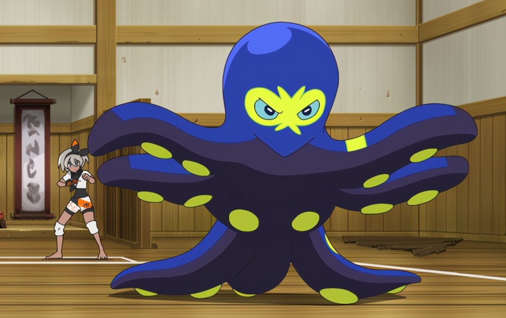八爪武师这只宝可梦的原型很有意思,它来自于现实的蓝环章鱼,而一说到蓝环章鱼的话,估计给不少人的印象都是这货身上有着剧毒,但以此为原型的八爪武师却是纯格斗系的宝可梦,除此之外也无法习得任何毒系招式,整体加入的柔道元素也可能也和章鱼柔软有关系。