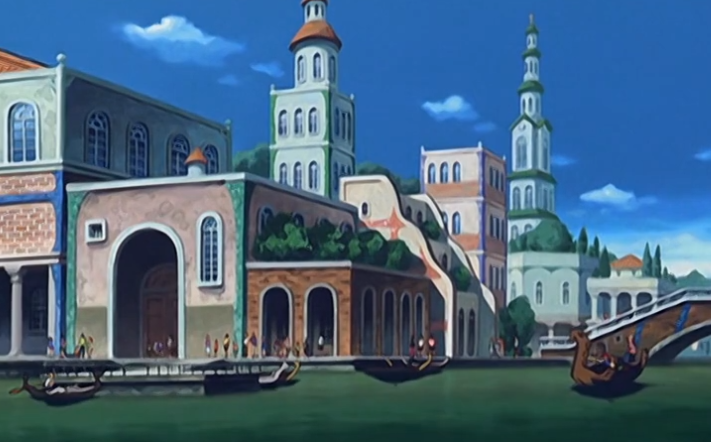 在剧场版《水都的守护神 拉帝亚斯和拉帝欧斯》中,由于奥多马雷的原型是威尼斯的缘故,二者在交通方式上也相类似,即水路运输。本作中的奥多马雷小舟便是参考威尼斯的代表性交通工具的贡多拉(Gondola)所设计的。