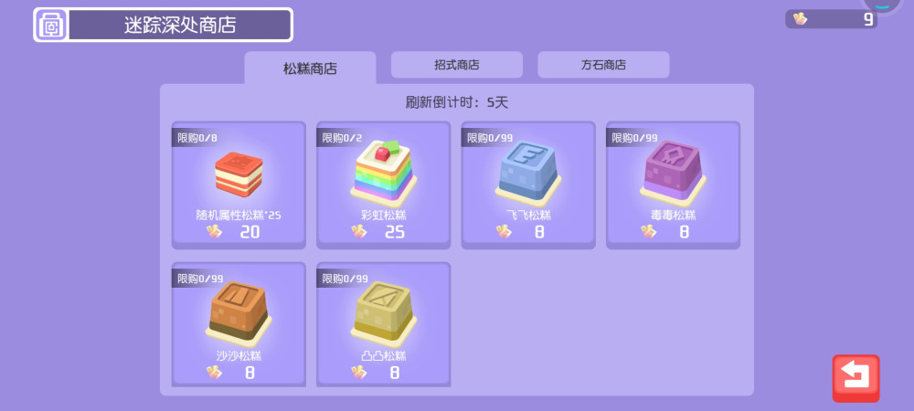 三:迷踪深处商店,可兑换松糕和属性结晶