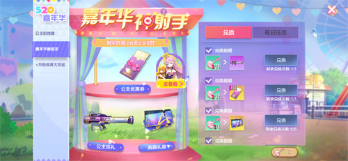 此外,玩家还可以在活动期间参加“嘉年华神射手活动,收集“飞镖”道具。追踪飞弹A级皮肤、公主优惠券、典藏礼券等各类珍稀游戏奖励都可以免费兑换。