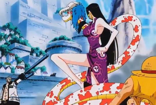 汉库克女帝帮助路飞潜入推进城后,继而又微了帮助路飞救出艾斯来到了马尔梵多,虽然世界政府是让七武海来阻止白胡子海贼团,但是女帝却为了帮路飞开路挡在了斯摩格