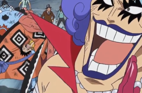 巴基,巴基跟着路飞来到马林梵多后,不仅被白胡子认出来,还被路飞抓起来挡住鹰眼的斩击,让他的一众跟班们十分佩服,路飞精神崩溃后,巴基带着甚平和路飞飞走,还遭到了赤犬的追杀,