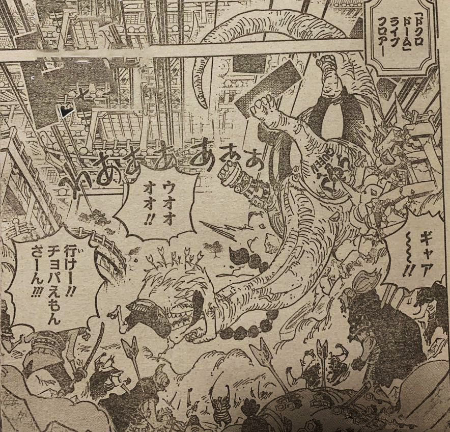 在之前剧情中,我们了解到马尔科正与两位三灾进行交锋,中途乔巴也加入战斗,并且掌掴三灾QUEEN,而在一旁的佩罗斯佩罗迟迟没有加入战斗,作为大妈团中少有的“智将”,佩罗斯佩罗肯定不会贸然加入战斗,虽然大妈已经和凯多团同盟,但面对马尔科、乔巴等强者,正面加入战斗并不会有太好的效果,所以佩罗斯佩罗想出一招,那就是在背后偷袭乔巴和武士。