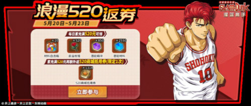 随着《灌篮高手》手游S6赛季进入爆燃冲刺阶段,在今日官方也开启了为期7天的520活动,满满福利只为让各位篮球手能在这美好的节日邂逅自己的热爱。