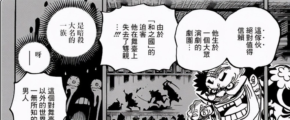 既然唯一赎罪的路被堵上,那么堪十郎被斩杀也在情理之中了,在1014话中,正要对桃之助下杀手的堪十郎遭遇锦卫门和菊之丞联手阻击,最终在菊之丞重伤濒死的前提下,由锦卫门斩杀堪十郎,让这个演员以他最不想要的方式落幕,标题“人生演技拙劣的演员 ”,也算是尾田留给堪十郎最后的尊重吧。
