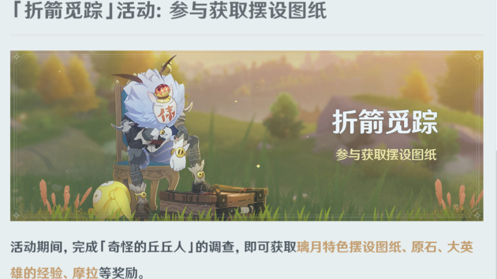 原神新一期活动来袭,这次的活动的名称叫做【折箭迷踪】。任务目标就是帮助专丘丘语家艾拉·马斯克一只奇怪的丘丘人(大伟丘)。原因就是他们最近在野外纠集同伴。难道,大伟哥要带领丘丘人,站起来?然后,顺带让旅行者们锤他一顿。