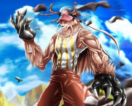 乔巴因为吃了动物系人人果实,拥有了人类所拥有的特征,但他本身是一只驯鹿,所以许多人类在见到乔巴时,都将他当做怪物看待。乔巴在吃了三颗蓝波球以后,就会进行怪物强化,身体变得十分高大,确实像是一只怪物。现在乔巴正在和奎因对战,他的蓝波球经过改良,已经成功将他变成怪物的时间由单位数变成双位数。