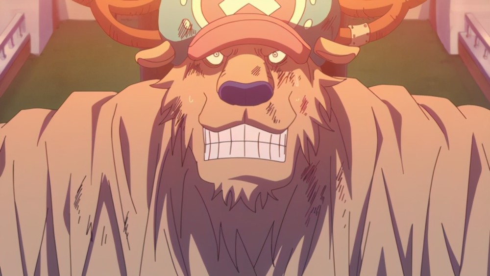 乔巴在和之国的表现非常出色,他不仅制作出了对抗奎因的解药,现在还和奎因打了起来。从乔巴的回忆中可以知道,他的蓝波球经过和凯撒的共同研究改造,已经可以将让他怪物强化状态维持更多的时间,那么乔巴的战斗力就得到了极大的加强,在怪物强化状态下乔巴可是接过大妈的攻击。