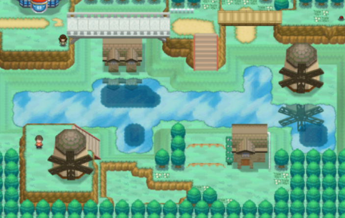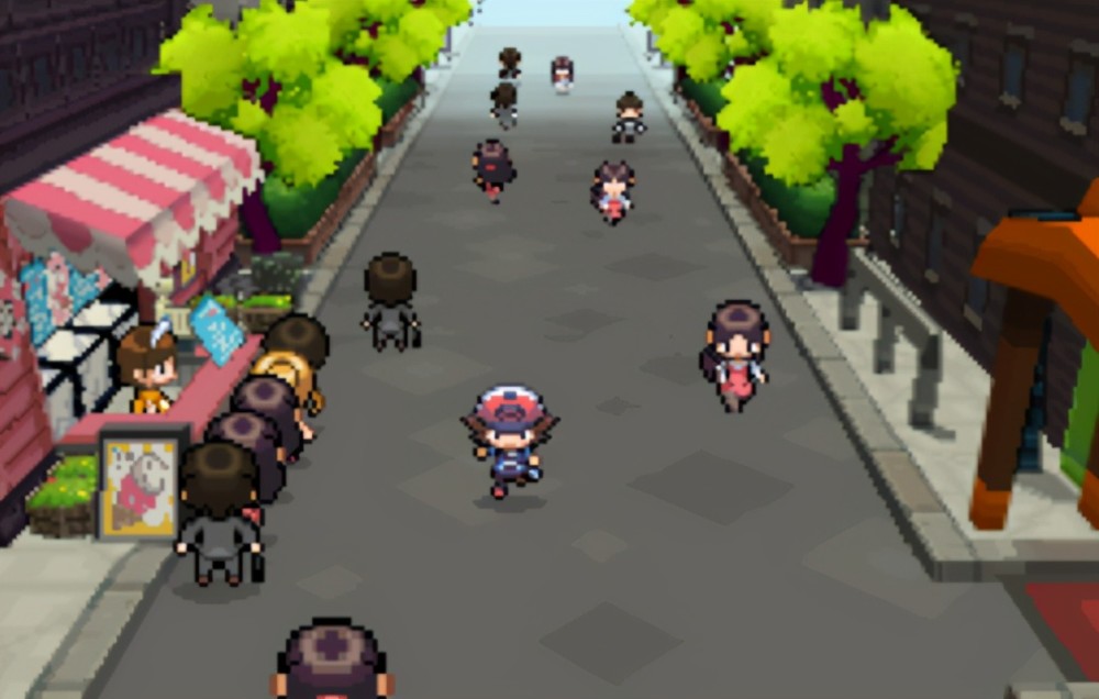 在《黑/白》以及《黑2/白2》中,这里的环境音指的是来到特定位置会出现的效果音,比如在雪花市有四个绕圈跳舞的NPC,当主角靠近他们的时候,能听到拍手声,离开的话拍手声会消失。但如果主角在那块能听见拍手声的区域使用飞翔或者瞬间移动来到当前的城镇(即雪花市)的话,拍手声会持续播放,无论主角跑到哪个位置,直到背景音乐切换才会消失。其他的像双龙市拉二胡的NPC和七宝市拉手风琴的NPC也有此情况(图为游戏中的雪花市)。