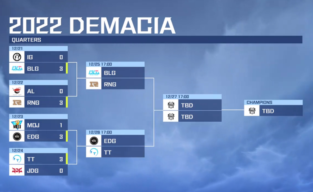 德玛西亚杯:JDG惨遭TT横扫!四强对阵已出炉