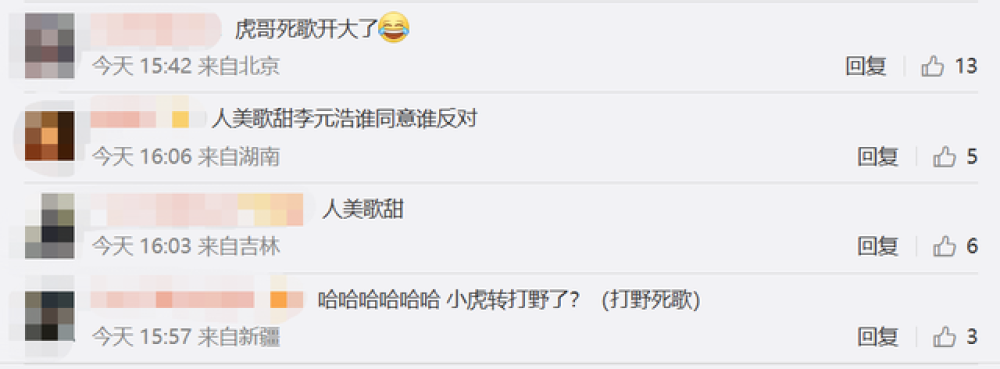 值得一提的是,这次WBG的线下粉丝见面会活动还有一个有趣的环节,也就是让小虎在现场一展歌喉。而了解小虎的粉丝,应该挺过他的成名曲《说谎》里的唱功,因此当听到他这一段现场唱的歌曲后,很多粉丝都忍不住锐评道:“哈哈哈哈哈哈 小虎转打野了?(打野死歌)。”