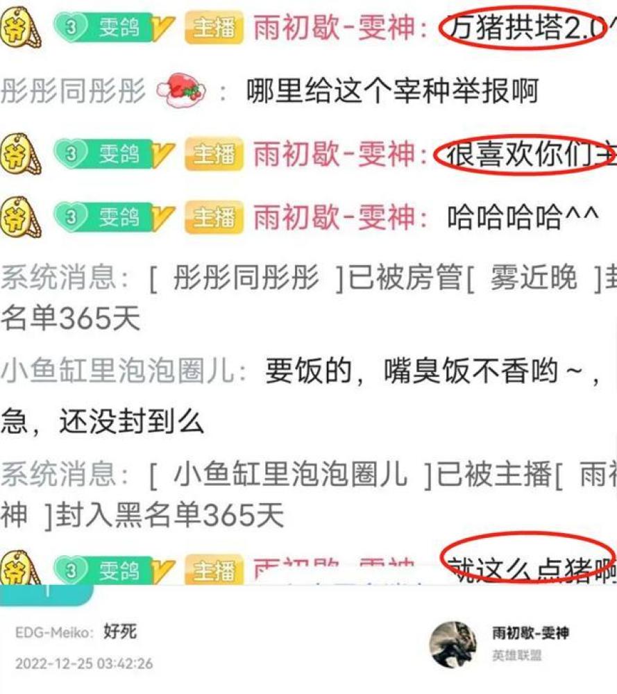 显然,去雯神直播间送热度的粉丝不如他的预期,主播有点着急了,还吐槽说:就这么点猪啊。meiko本人似乎还进了雯神的直播间,送给他2个字——好s。显然,meiko也知道他打得什么主意。