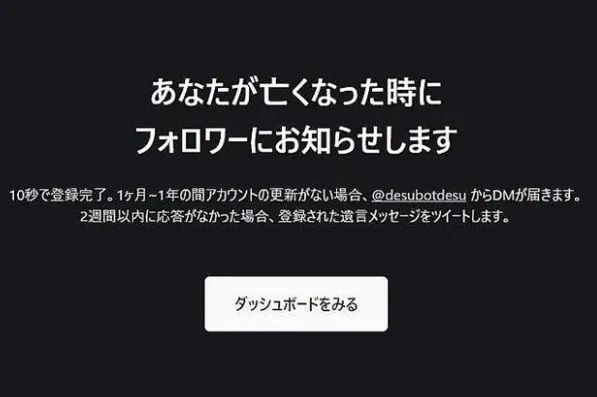 近日有19岁日本网友活用推特的“bot”机能开发自动死亡宣告功能,引发网友点赞,可以让网友自动编辑“遗言”,展示给朋友们。