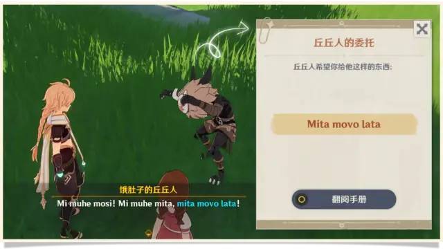 在与丘丘人交流的过程中,如果遇到不明白的单词或句子,旅行者们可以翻阅艾拉·马斯克提供的丘丘语速查手册哦(可在「背包/任务 」或活动界面翻阅手册)。