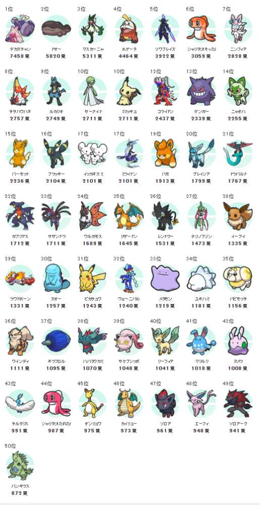 31.皮卡丘(1243票)