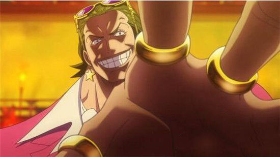 号称黄金帝的吉尔德·泰左洛,原本是天龙人的奴隶,在逃出后,他从多弗朗明哥那里偷到了超人系果实黄金果实,能把身体和接触的物体变成黄金,拥有世界上最大的赌场,拥有的财富甚至超过了世界政府,通过每年向天龙人上交巨额天上金保证自己不会被海军抓捕,就算是多弗朗明哥看见他估计也不敢动手。