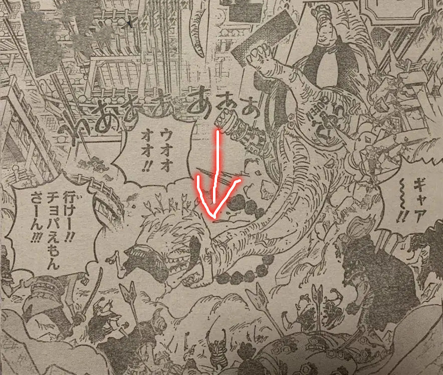 虽然奎因被乔巴按倒在地上,但是奎因还可以继续战斗。他竟然从嘴里射出了激光炮,蓝波球经过改良之后,乔巴不会失去自我意识。所以乔巴躲过了奎因的攻击,看得出来,乔巴目前的最强形态就是吃下蓝波球之后巨大化。
