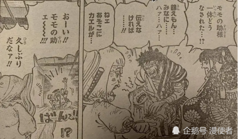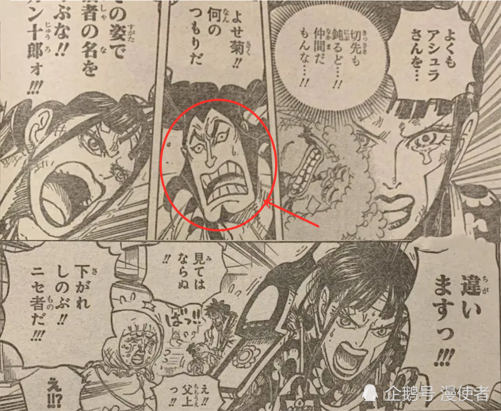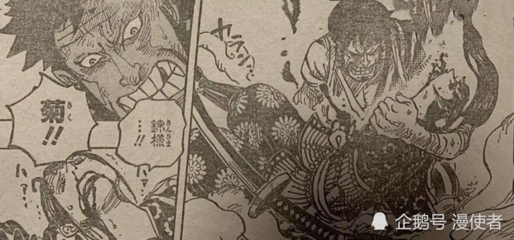 除了小菊之外,另一个牺牲的“九侠”就是锦卫门。开始的时候,锦卫门在照顾桃之助,毕竟桃之助只有5岁,所以他需要人照顾。后面发现小菊被刺伤之后,锦卫门也坐不住了。他直接起身干掉了堪十郎!堪十郎不用怀疑,这个角色肯定会被尾田老师“画死”。这个角色本身就比较坏,尤其是在和之国,他成了“人人得而诛之”的坏人,这样的角色肯定会挂掉。锦卫门干掉堪十郎之后,凯多出现了,凯多才是最恐怖的存在。